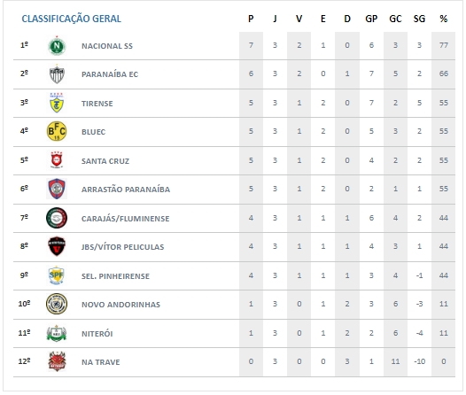 Veja a Classificação atualizada após 3 rodadas. As oito melhores equipes se classificam para as Quartas de Final: