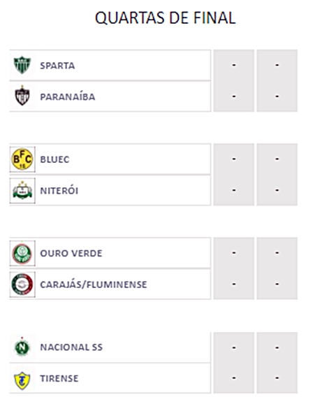 Os confrontos das Quartas de Final serão disputados no sistema de “mata-mata” com jogos de Ida e Volta sem nenhuma vantagem adicional as equipes.